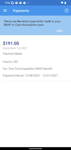 The app’s got a bunch of useful features. And you can view the current status of your cases, check your EBT balances, and even see upcoming appointment dates. There’s also a payments section where you can see things like rent or utility payments made by HRA. Took me a while to figure out some of the menu options, but once you get the hang of it, it’s pretty straightforward.