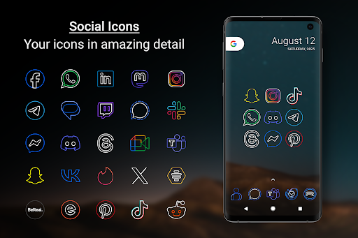 Here’s what you can do: there’s over 13,000 hand-crafted icons to choose from, and they support a ton of different launchers. The icons have this minimal, subtle style that looks really nice. It also comes with a bunch of matching wallpapers which is a nice bonus. And the icon masking feature is pretty useful for unthemed apps.