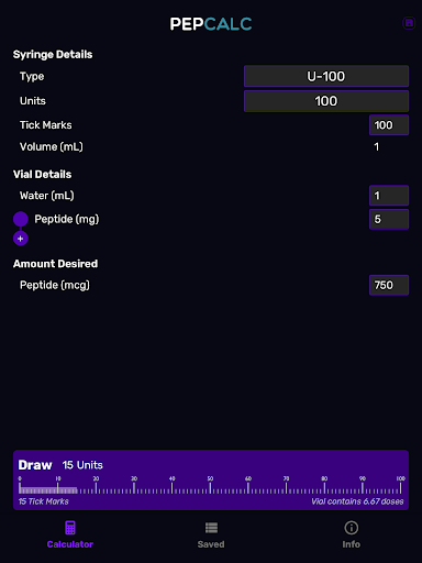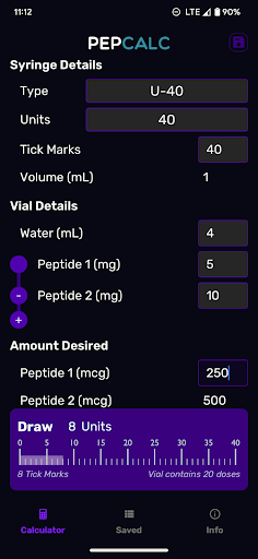 Been using PepCalc: Peptide Calculator for a couple months now. It’s basically an app that helps you figure out how much of a peptide to mix with water. Pretty solid if you’re into supplements and research chemicals. Here’s what you do: you put in the amount of peptide you have, the volume of water, and it calculates the right concentration. And there’s also features to choose the type of syringe you’re using, and you can even do blends with multiple peptides. Took me a while to figure some of that out, but it’s really useful once you get the hang of it. Look, if you’re into mixing your own peptides, you’ll probably like this app. It’s not perfect – the UI can be a bit confusing at first – but overall it does the job. Worth checking out.
