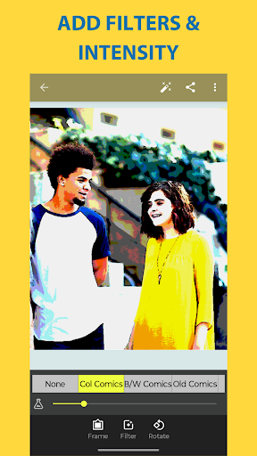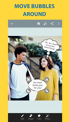 Here’s what you do – you can add your own text and dialogues in bubbles, resize and position them however you want. There’s also a bunch of pre-made frames and styles to give your photos a unique look. And the smart face detection is kind of neat, it’ll automatically generate conversations between people in your photos.