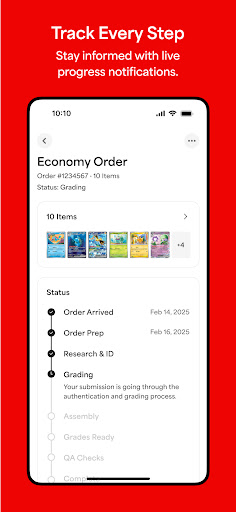There’s a ton of cool features – you can build and track your grading submissions, get real-time updates on order progress, and even flip to reveal your card’s grade in a fun little animation. And the ability to just scan a card and see its current market value is super handy.