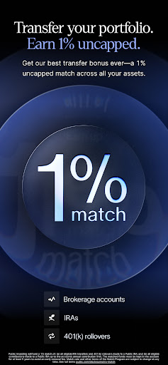 • Get a 1% match when you transfer accounts or contribute to an IRA