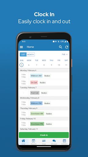 Here’s what you do: you can view your schedule by month or list, clock in and out, and even trade shifts with coworkers. And there’s also an in-app messaging feature which is pretty cool. And you can sync the schedule to your personal calendar – took me a while to figure that out but it’s useful.
