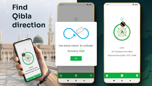 Here’s what you do: you just open the app and place your phone on a flat surface. And it’ll show you the Qibla direction instantly. There’s also a Qibla compass feature which is pretty cool. And it works offline too – no internet needed to find the Qibla direction.