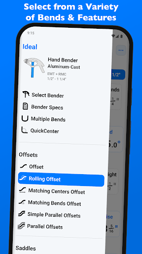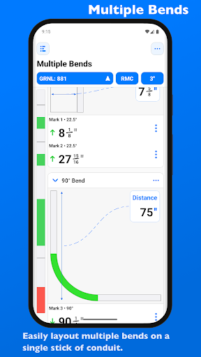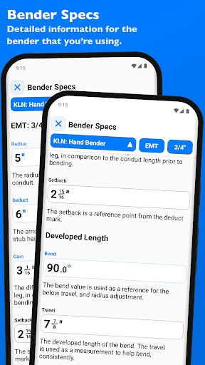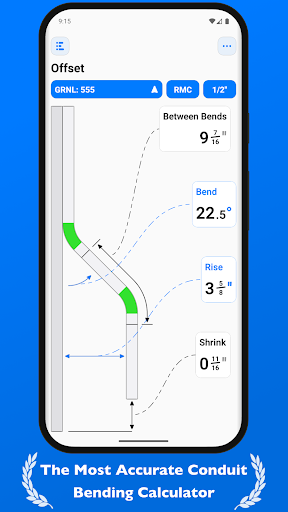 Here’s what you can do – there’s a bunch of different conduit sizes and types you can select, and it’ll give you the exact measurements and angles for the bends. It’s got a really slick interface too, super easy to use. And the calculations are supposed to be super accurate, taking into account the radius of the bender and all that technical stuff.