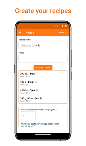Here’s what you do: you add in the ingredients and quantities for a recipe, and the app calculates the total cost for you. There’s also a feature where you can set your desired profit margin, and it’ll tell you the selling price. And you can create shopping lists from your recipes – that’s been really handy.
