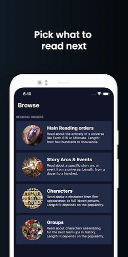 Here’s what you do – you pick a character, event, or story arc, and the app shows you the full reading order. There’s also a main core order you can follow. It’s got a nice progress tracker so you know where you left off. Took me a while to figure out all the features but they’re pretty useful.