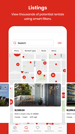 Here’s what you do: you can browse through tons of rental listings, mark the ones you like as favorites, and then apply for them with just a few taps. There’s also smart filters where you can thumbs up or thumbs down places to get better recommendations. And the app keeps all your favorite listings in one place so you can easily compare details like square footage, amenities, and move-in specials.