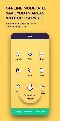 Here’s what you can do – there’s turn-by-turn directions for going both east and west on Route 66. And it’s got over 1,300 attractions and landmarks along the way with notifications so you don’t miss anything. And the offline mode is super handy, you just download the maps beforehand and you’re good to go even in areas with no signal.
