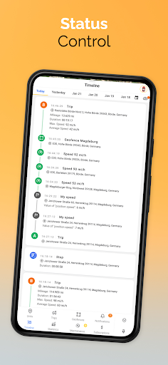 Here’s what you do: you can evaluate how eco-friendly your driving is and earn points for each trip. There’s also a feature to monitor maintenance intervals based on mileage. And you can analyze all sorts of parameters like mileage, duration, speed – it’ll even build graphs on your vehicle usage.