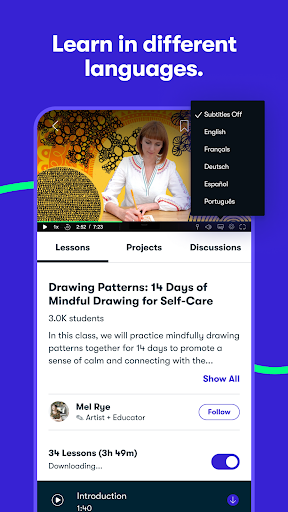 Here’s what you can do: there’s thousands of online video lessons taught by real experts. You can learn to use tools like Photoshop, Illustrator, Procreate, and all that. And the classes cover both hobby and professional-level skills. It’s got a pretty big library to explore.