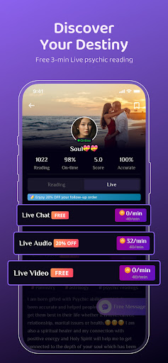 • Tons of different services to choose from - live chat, psychic readings, AI mood analysis