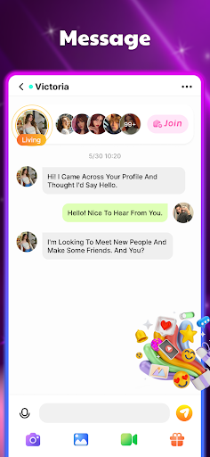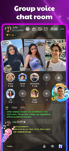 Here’s what you can do – there’s video calling so you can chat face-to-face, and there’s also group voice chat rooms with video. And you can even customize your profile with cool avatar frames and chat effects. Lots of ways to express yourself and stand out.