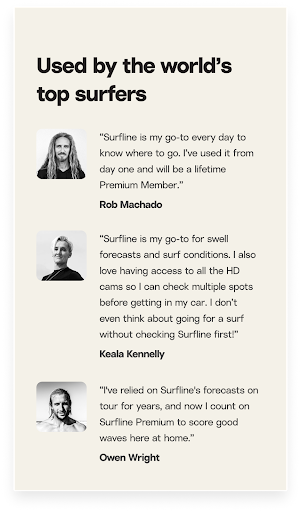 Here’s what you do: You can look at live surf cams from over 950 spots around the world to see what the conditions are like. There’s also daily surf reports from the Surfline team, which is pretty cool. And you can use the 16-day forecasts to plan your surf trips – took me a while to figure that out but it’s useful.