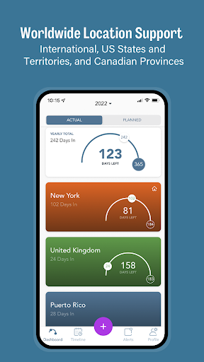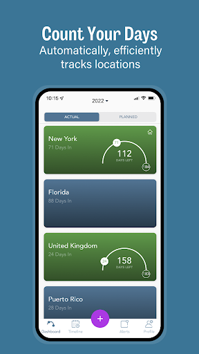 Here’s what you do: the app runs in the background and automatically tracks your location, then shows you how many days you’ve spent in each place. There’s also a feature that’ll give you a heads up when you’re getting close to a residency threshold. And the reporting at the end of the year looks pretty comprehensive – you can download a summary to use for tax purposes.