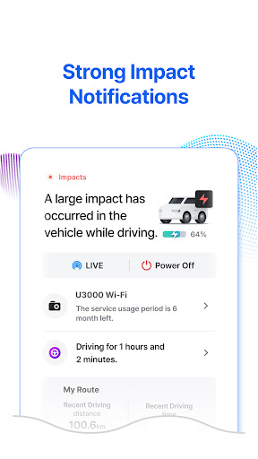 Here’s what you can do: you can remotely view your car’s camera feed in real-time, whether you’re driving or it’s just parked. There’s also impact notifications – it’ll let you know if your car gets bumped in the parking lot. And you can check your driving history and vehicle status right from the app, which is pretty useful.