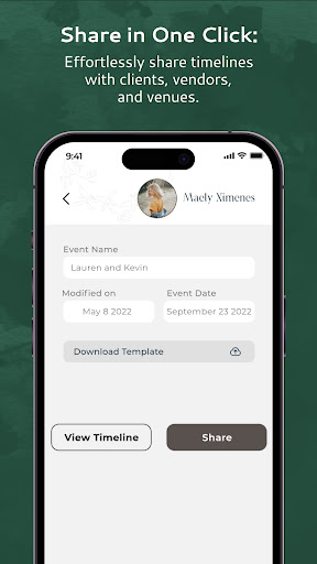 Here’s what you can do – you can create multiple wedding day timelines in minutes, select from pre-designed templates for things like wedding sessions and events, and then personalize those templates. And there’s also easy timeline sharing, instant feedback alerts, and tools to manage client info, take notes, and store your session shot list.