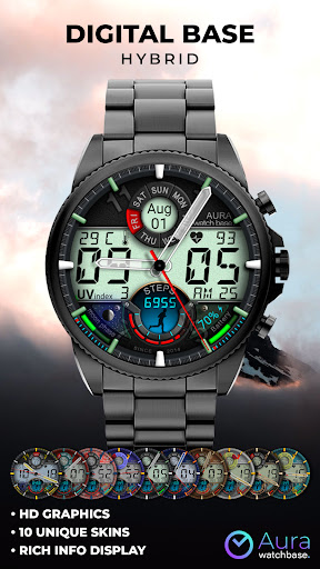 Here’s what you can do: there’s 10 different color skins to choose from, an always-on display, and it shows the date, time, seconds, AM/PM, battery, temperature, UV index, steps, and even moon phases. And it’s got a nice clean analog and digital look. Took me a while to figure out all the features but they’re pretty useful once you get the hang of it.