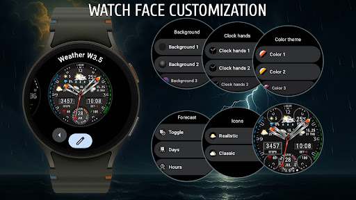 I’ve been using Weather watch face W3.5 for a couple months now. It’s basically a beautifully designed analog watch face that gives you live weather updates and forecasts right on your smartwatch. Pretty solid app if you’re into that kind of thing.