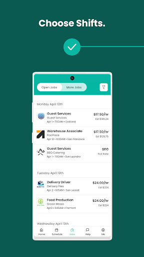 Here’s what you do: you just browse the available shifts in your area and pick the ones that work for you. There’s also a feature where you can get your earnings the next day, which is pretty cool. And there’s upskilling opportunities if you wanna try new types of jobs – took me a while to figure that out but it’s useful.