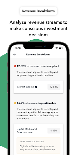 • Detailed reports on the halal status of your investments
