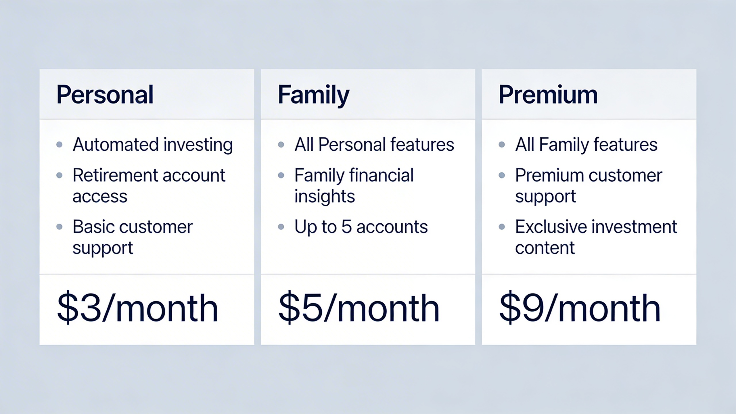 | Personal | $3 | Round-ups, checking account, basic education | Beginning investors |