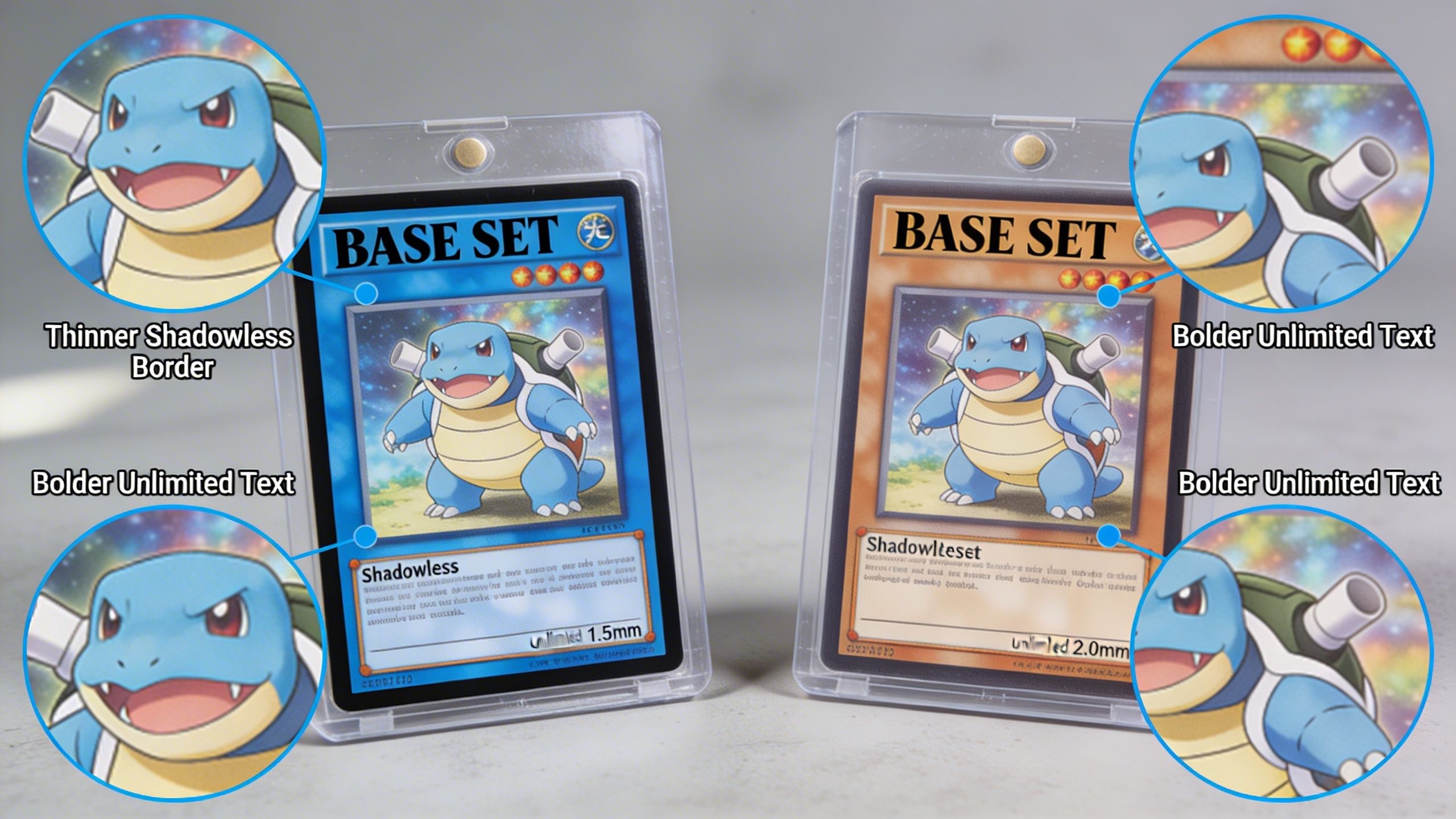 What's the difference between shadowless and unlimited Blastoise cards?