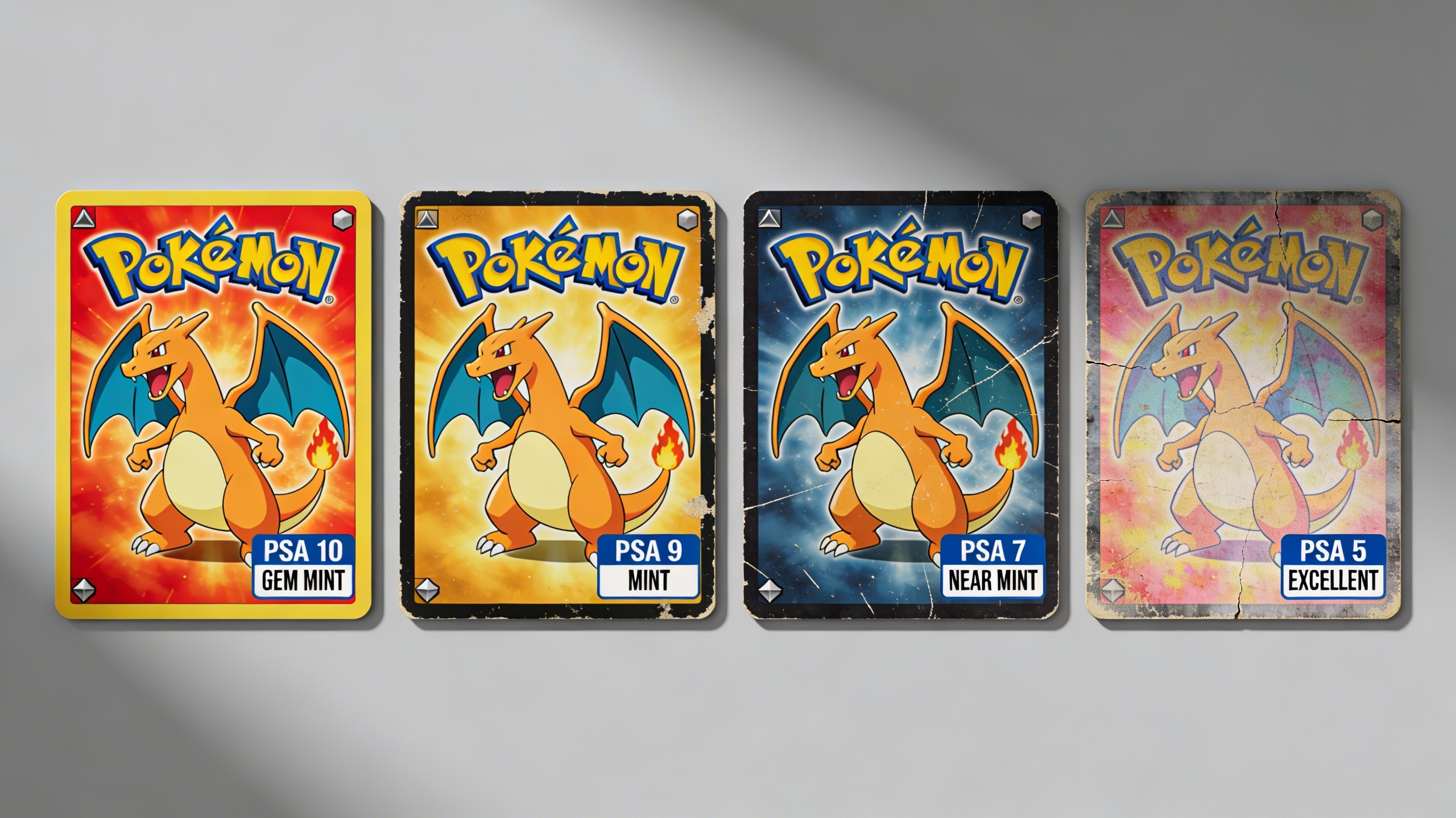 When evaluating ungraded cards, examine centering first—borders should be roughly equal on all sides. Check corners for whitening or rounding, inspect edges for chipping, and look for surface scratches or print defects. Even minor flaws can drop a card from PSA 10 to PSA 9, representing tens of thousands in lost value for high-end Charizard cards.