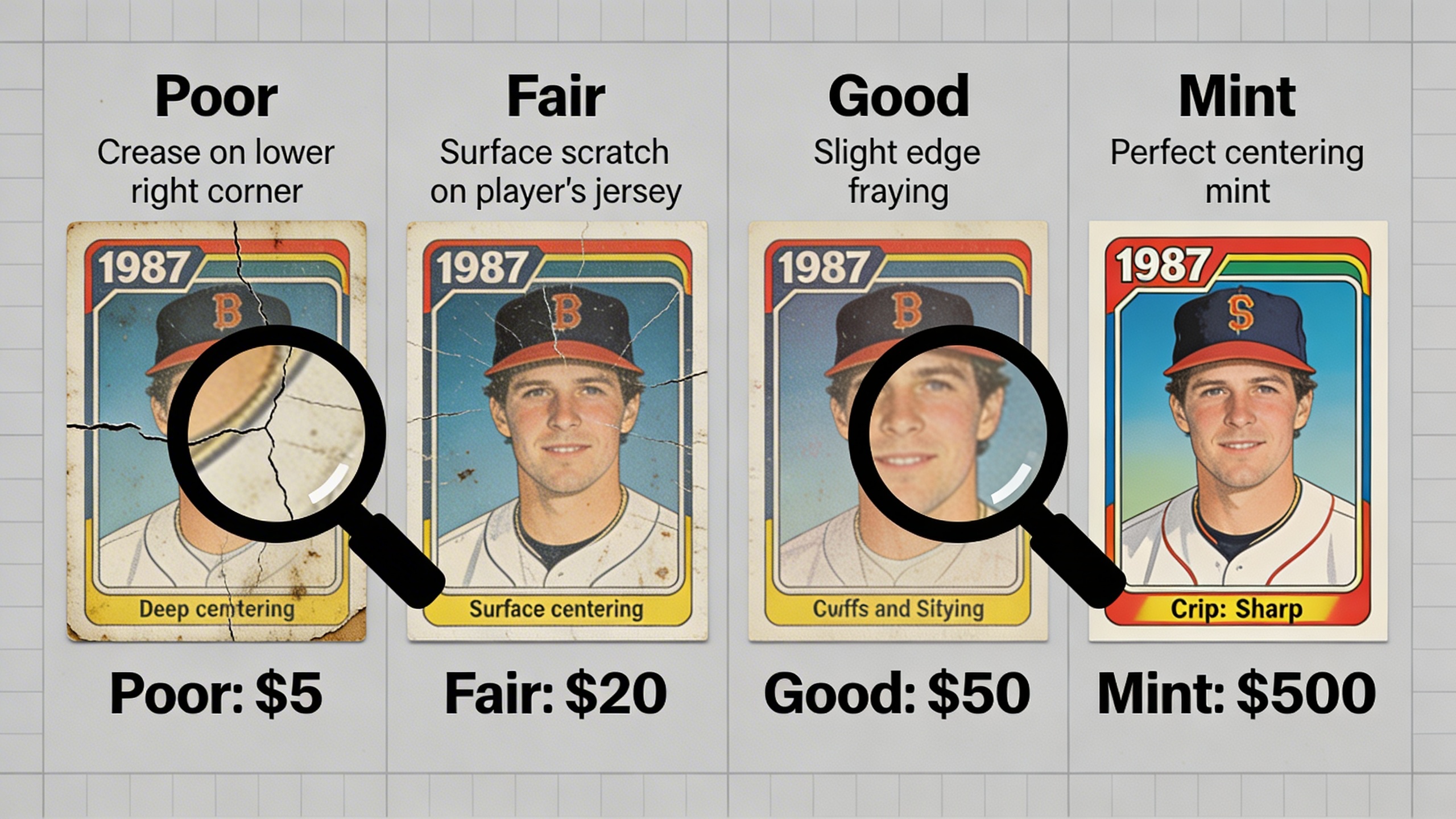 Understanding card condition is crucial when evaluating 1980s Topps baseball cards, as even slight condition differences can dramatically impact values. The decade’s mass production methods created specific quality control challenges that collectors must recognize when assessing their investments.